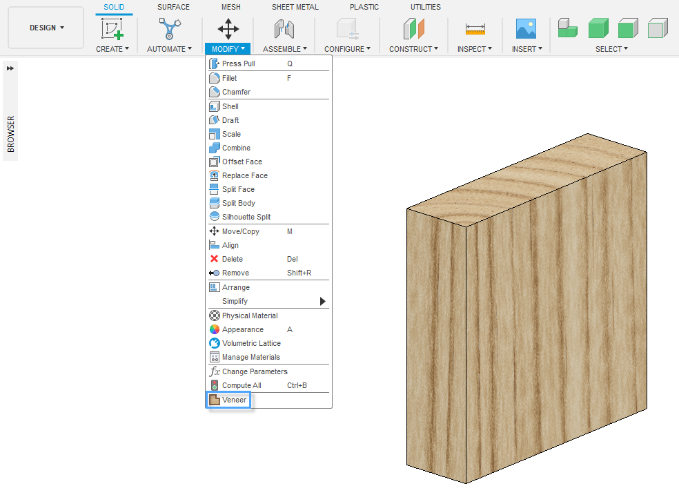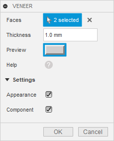 Veneer creates veneer for panels in a cabinet. This add-in allows you to specify the thickness and location of veneer. It is particularly useful in woodworking.